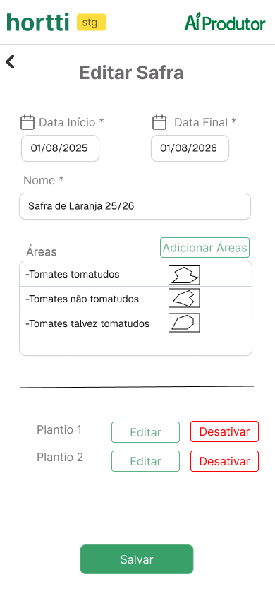 Tela de Cadastro de Safra